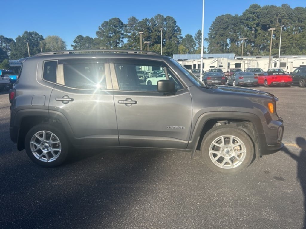 Certified. Graphite Gray 2022 Jeep Renegade Latitude 4WD 9-Speed 948TE Automatic 1.3L I4 Ford Blue Advantage: Blue Certified Certified, 115V Auxiliary Power Outlet, 40/20/40 Rear Seat w/Trunk Pass-Thru, Auto-Dimming Rear-View Mirror, Convenience Group, Heated Front Seats, Heated Steering Wheel, MOPAR Exterior Appearance Group (DISC), Mopar Front Air Deflector, MOPAR Front Splash Guards, MOPAR Rear Splash Guards, MOPAR Side Window Deflectors, Power 2-Way Driver Lumbar Adjust, Power Adjust 8-Way Driver Seat, Quick Order Package 22B, Rain Sensitive Windshield Wipers, Windshield Wiper De-Icer, 17" x 7.0" Aluminum Wheels, 3.734 Final Drive Ratio, 4-Wheel Disc Brakes, 6 Speakers, ABS brakes, Air Conditioning, Alloy wheels, AM/FM radio: SiriusXM, Anti-whiplash front head restraints, Apple CarPlay/Android Auto, Automatic temperature control, Brake assist, Compass, Delay-off headlights, Driver door bin, Driver vanity mirror, Dual front impact airbags, Dual front side impact airbags, Electronic Stability Control, Emergency communication system: SiriusXM Guardian, Four wheel independent suspension, Front anti-roll bar, Front Bucket Seats, Front Center Armrest, Front dual zone A/C, Front fog lights, Front reading lights, Fully automatic headlights, Heated door mirrors, Illuminated entry, Knee airbag, Low tire pressure warning, Navigation System, Normal Duty Suspension, Occupant sensing airbag, Outside temperature display, Overhead airbag, Panic alarm, ParkView Rear Back-Up Camera, Passenger door bin, Passenger vanity mirror, Power door mirrors, Power steering, Power windows, Premium Cloth Bucket Seats, Radio data system, Radio: Uconnect 4C Nav w/8.4" Display, Rear anti-roll bar, Rear window defroster, Rear window wiper, Remote keyless entry, Roof rack: rails only, Security system, Speed control, Split folding rear seat, Spoiler, Steering wheel mounted audio controls, Tachometer, Telescoping steering wheel, Tilt steering wheel, Traction control, Trip computer, Variably intermittent wipers, Voltmeter, **LOCAL TRADE**, 115V Auxiliary Power Outlet, 40/20/40 Rear Seat w/Trunk Pass-Thru, Auto-Dimming Rear-View Mirror, Convenience Group, Heated Front Seats, Heated Steering Wheel, MOPAR Exterior Appearance Group (DISC), Mopar Front Air Deflector, MOPAR Front Splash Guards, MOPAR Rear Splash Guards, MOPAR Side Window Deflectors, Power 2-Way Driver Lumbar Adjust, Power Adjust 8-Way Driver Seat, Quick Order Package 22B, Rain Sensitive Windshield Wipers, Windshield Wiper De-Icer.