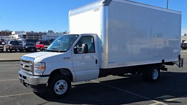 2026 Ford E-450SD RWD Oxford White**FEATURES 16ft Box body with Tuck Away Lift Gate** 7.3L V8 Gas Engine**14,500 GVWR**55 Gallon Fuel Tank**Power Equipment Group** Cruise Control**The Lift Gate has a 2,200lb lifting capacity**Body has recessed E-Track**Roll Up Door and a 24" Deep 12GA Steel Diamond Plate threshold**