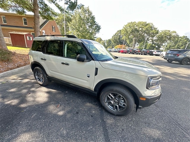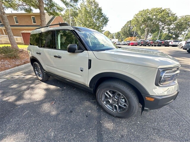 Desert Sand 2025 Ford Bronco Sport Big Bend 4WD 8-Speed Automatic 1.5L EcoBoost 4-Wheel Disc Brakes, 6 Speakers, ABS brakes, Air Conditioning, Alloy wheels, AM/FM radio: SiriusXM, AM/FM Stereo, Auto High-beam Headlights, Automatic temperature control, Brake assist, Cargo Management System (Shelf/Divider/Table), Cloth w/Easy-to-Clean Front Bucket Seats, Compass, Convenience Package, Delay-off headlights, Driver door bin, Driver vanity mirror, Dual front impact airbags, Dual front side impact airbags, Electronic Stability Control, Emergency communication system: SYNC 4 911 Assist, Four wheel independent suspension, Front & Rear Floor Liners w/o Carpet Mats, Front anti-roll bar, Front Bucket Seats, Front Center Armrest, Front Driver/Passenger Seat Back Map Pockets, Front License Plate Bracket, Front reading lights, Fully automatic headlights, Heated 8-Way Power Driver's Seat, Heated door mirrors, Illuminated entry, Knee airbag, LED Fog Lamps, Low tire pressure warning, Occupant sensing airbag, Outside temperature display, Overhead airbag, Overhead console, Panic alarm, Passenger door bin, Passenger vanity mirror, Power door mirrors, Power Moonroof, Power steering, Power windows, Premium Wrapped Steering Wheel, Radio data system, Rear anti-roll bar, Rear Parking Sensors, Rear reading lights, Rear seat center armrest, Rear window defroster, Rear window wiper, Remote keyless entry, Security system, SiriusXM, Speed control, Speed-sensing steering, Speed-Sensitive Wipers, Split folding rear seat, Steering wheel mounted audio controls, SYNC 4 w/Enhanced Voice Recognition, Tachometer, Telescoping steering wheel, Tilt steering wheel, Traction control, Trip computer, Universal Garage Door Opener (UGDO), Variably intermittent wipers, Wheels: 17" Carbonized Gray-Painted Aluminum.