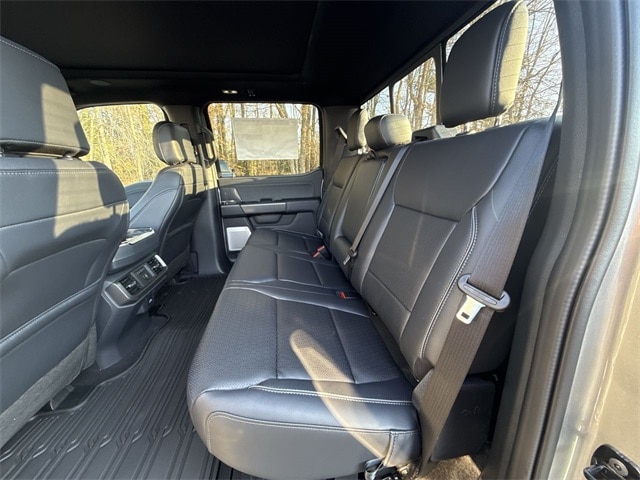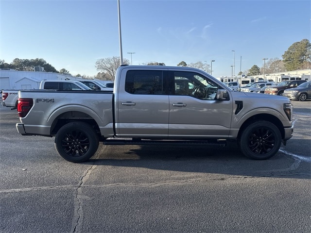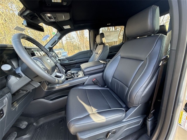 Iconic Silver Metallic 2025 Ford F-150 Lariat 4WD 10-Speed Automatic 3.5L V6 EcoBoost 4WD, 2nd Row Heated Seats, 4 Pickup Box Tie-Down Plates, 4-Wheel Disc Brakes, 4x4 FX4 Off-Road Bodyside Decal, 6" Extended Running Boards, 8 Speakers, ABS brakes, ActiveX Trimmed Bucket Seats, Adjustable pedals, Air Conditioning, Alloy wheels, AM/FM radio: SiriusXM with 360L, Ambient Lighting - Ice Blue Color Only, Auto High-beam Headlights, Auto-dimming door mirrors, Auto-dimming Rear-View mirror, Automatic temperature control, Bed Utility Package, Brake assist, Bumpers: chrome, Chrome wheels, Compass, Console Worksurface, Delay-off headlights, Driver door bin, Driver vanity mirror, Dual front impact airbags, Dual front side impact airbags, Electronic Stability Control, Emergency communication system: SYNC 4 911 Assist, Equipment Group 502A High, Front anti-roll bar, Front Bucket Seats, Front Center Armrest, Front dual zone A/C, Front fog lights, Front License Plate Bracket, Front reading lights, Front wheel independent suspension, Fully automatic headlights, FX4 Off-Road Package, Garage door transmitter, Heads-Up Display, Heated door mirrors, Heated front seats, Heated steering wheel, Hill Descent Control, Illuminated Driver & Passenger Visors, Illuminated entry, Internet access capable: FordPass Connect 5G, LED Box Lighting, Low tire pressure warning, Memory seat, Mobile Office Package, Monotube Rear Shocks, Navigation system: Connected Navigation, Occupant sensing airbag, Off-Road Tuned Front Shock Absorbers, Outside temperature display, Overhead airbag, Overhead console, Panic alarm, Partitioned Lockable Rear Storage, Passenger door bin, Passenger vanity mirror, Pedal memory, Power door mirrors, Power driver seat, Power passenger seat, Power steering, Power Tailgate, Power windows, Power-Sliding Rear Window, Pro Access Tailgate, Radio data system, Radio: B&O Sound System by Bang & Olufsen, Radio: B&O Unleashed Sound System by Bang & Olufsen, Rain sensing wipers, Rear reading lights, Rear seat center armrest, Rear step bumper, Rear window defroster, Remote keyless entry, Rock Crawl Mode, Security system, Speed control, Split folding rear seat, Steering wheel mounted audio controls, SYNC 4 w/Enhanced Voice Recognition, Tachometer, Telescoping steering wheel, Tilt steering wheel, Tough Bed Spray-In Bedliner, Tow/Haul Package, Traction control, Tray Style Floor Liner w/o Carpet Mats, Trip computer, Turn signal indicator mirrors, Twin Panel Moonroof, Variably intermittent wipers, Ventilated front seats, Voltmeter, Wheels: 18" Chrome-Like PVD, Wheels: 20" Chrome-Like PVD, Wireless Charging, 4WD.