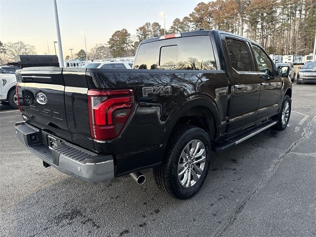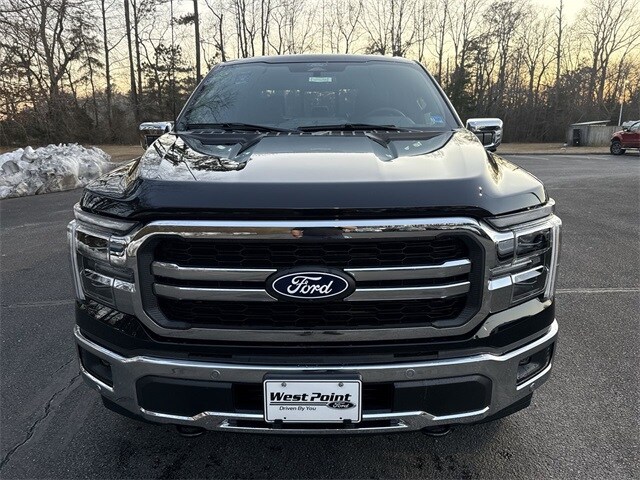 Agate Black Metallic 2026 Ford F-150 Lariat 4WD 10-Speed Automatic 3.5L V6 EcoBoost 4WD, 2nd Row Heated Seats, 4 Pickup Box Tie-Down Plates, 4-Wheel Disc Brakes, 4x4 FX4 Off-Road Bodyside Decal, 8 Speakers, ABS brakes, ActiveX Trimmed Bucket Seats, Air Conditioning, Alloy wheels, AM/FM radio: SiriusXM with 360L, Ambient Lighting - Ice Blue Color Only, Auto High-beam Headlights, Auto-dimming door mirrors, Auto-dimming Rear-View mirror, Automatic temperature control, Bed Storage Boxes, Bed Utility Package, Brake assist, Bumpers: chrome, Chrome wheels, Compass, Console Worksurface, Delay-off headlights, Driver door bin, Driver vanity mirror, Dual front impact airbags, Dual front side impact airbags, Electronic Stability Control, Emergency communication system: SYNC 4 911 Assist, Equipment Group 502A High, Ford Connectivity Package (1-Year Included), Front anti-roll bar, Front Bucket Seats, Front Center Armrest, Front dual zone A/C, Front fog lights, Front License Plate Bracket, Front reading lights, Front wheel independent suspension, Fully automatic headlights, FX4 Off-Road Package, Garage door transmitter, Head-Up Display, Heated door mirrors, Heated front seats, Heated steering wheel, Hill Descent Control, Illuminated Driver and Passenger Visors, Illuminated entry, Integrated Trailer Brake Controller, Internet access capable: 5G Modem - Ford Connectivity Package, LED Box Lighting, Low tire pressure warning, Memory seat, Mobile Office Package, Monotube Rear Shocks, Navigation system: Connected Navigation, Occupant sensing airbag, Off-Road Tuned Front Shock Absorbers, Outside temperature display, Overhead airbag, Overhead console, Panic alarm, Partitioned Lockable Rear Storage, Passenger door bin, Passenger vanity mirror, Power door mirrors, Power driver seat, Power passenger seat, Power steering, Power windows, Power-Adjustable Pedals with Memory, Power-Sliding Rear Window, Radio data system, Radio: B&O Sound System by Bang and Olufsen, Radio: B&O Unleashed Sound System by Bang & Olufsen, Rain sensing wipers, Rear reading lights, Rear seat center armrest, Rear step bumper, Rear window defroster, Remote keyless entry, Security system, Speed control, Split folding rear seat, Steering wheel mounted audio controls, SYNC 4 with Enhanced Voice Recognition, Tachometer, Tailgate Step with Work Surface, Telescoping steering wheel, Tilt steering wheel, Tough Bed Spray-in Bedliner, Tow/Haul Package, Traction control, Tray Style Floor Liner Without Carpet Mats, Trip computer, Turn signal indicator mirrors, Variably intermittent wipers, Ventilated front seats, Wheels: 18" Chrome-Like PVD, Wheels: 20" Chrome-Like PVD, Wireless Charging, 4WD.