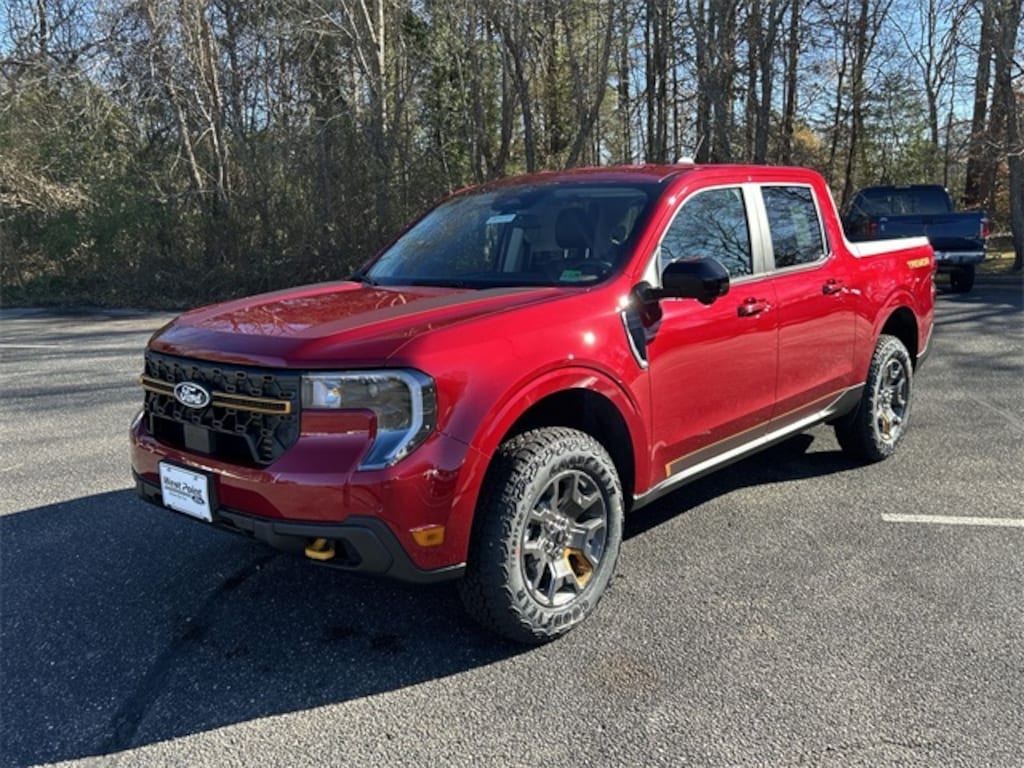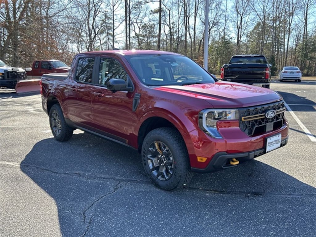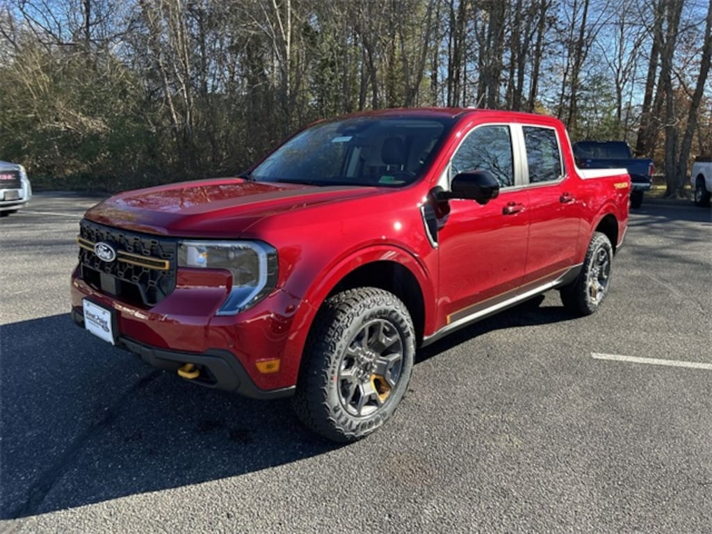 Ruby Red Metallic Tinted Clearcoat 2026 Ford Maverick Tremor AWD 8-Speed Automatic EcoBoost 2.0L I4 GTDi DOHC Turbocharged VCT 3.63 Axle Ratio, 4-Wheel Disc Brakes, 8 Speakers, ABS brakes, ActiveX Trimmed Heated Front Bucket Seats, Air Conditioning, Alloy wheels, AM/FM radio: SiriusXM with 360L, Apple CarPlay/Android Auto, Auto High-beam Headlights, Automatic temperature control, Brake assist, Bumpers: body-color, Compass, Delay-off headlights, Driver door bin, Driver vanity mirror, Dual front impact airbags, Dual front side impact airbags, Electronic Stability Control, Emergency communication system: SYNC 4 911 Assist, Equipment Group 602A, Exterior Parking Camera Rear, Ford Connectivity Package (1-Year Included), Four wheel independent suspension, Front anti-roll bar, Front Bucket Seats, Front Center Armrest, Front dual zone A/C, Front reading lights, Fully automatic headlights, Heated door mirrors, Heated front seats, Heated steering wheel, Illuminated entry, Internet access capable: 5G Modem - Ford Connectivity Package, Knee airbag, Low tire pressure warning, Navigation system: Connected Navigation, Occupant sensing airbag, Outside temperature display, Overhead airbag, Overhead console, Panic alarm, Passenger door bin, Passenger vanity mirror, Power door mirrors, Power driver seat, Power steering, Power windows, Power-Sliding Rear Window, Radio data system, Rear anti-roll bar, Rear seat center armrest, Rear step bumper, Remote keyless entry, Security system, Speed control, Speed-sensing steering, Steering wheel mounted audio controls, Tachometer, Telescoping steering wheel, Tilt steering wheel, Traction control, Trip computer, Wheels: 17" Machined-Face Tarnished Dark Painted.