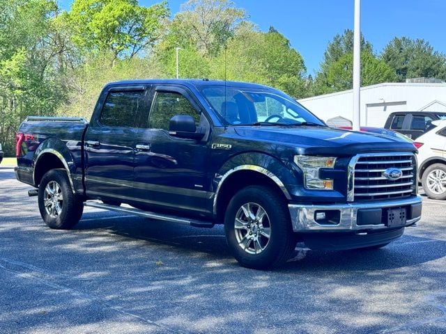 Blue 2016 Ford F-150 XLT 4WD 6-Speed Automatic Electronic 3.5L V6 4WD, 110V/400W Outlet, 4-Wheel Disc Brakes, 6 Speakers, 8-Way Power Driver's Seat, ABS brakes, Air Conditioning, All-Weather Rubber Floor Mats, Alloy wheels, AM/FM radio, Auto-Dimming Rear-View Mirror, Brake assist, Bumpers: chrome, CD player, Chrome Billet Style Grille w/Chrome Surround, Chrome Door & Tailgate Handles w/Body-Color Bezel, Chrome Step Bars, Class IV Trailer Hitch Receiver, Cloth 40/20/40 Front Seat, Compass, Delay-off headlights, Driver door bin, Driver vanity mirror, Dual front impact airbags, Dual front side impact airbags, Electronic Stability Control, Equipment Group 302A Luxury, Extended Range 36 Gallon Fuel Tank, Front anti-roll bar, Front Center Armrest w/Storage, Front fog lights, Front License Plate Bracket, Front reading lights, Front wheel independent suspension, Fully automatic headlights, FX4 Off-Road Package, Heated Front Seats, Illuminated entry, Integrated Trailer Brake Controller, Leather-Wrapped Steering Wheel, LED Box Lighting, Low tire pressure warning, Occupant sensing airbag, Outside temperature display, Overhead airbag, Panic alarm, Passenger door bin, Passenger vanity mirror, Power door mirrors, Power Glass Heated Sideview Mirrors, Power steering, Power windows, Power-Adjustable Pedals, Power-Sliding Rear Window, Pro Trailer Backup Assist, Radio data system, Radio: AM/FM Stereo/Single-CD Player, Radio: Single-CD w/SiriusXM Satellite, Rear reading lights, Rear step bumper, Rear Under-Seat Storage, Rear View Camera w/Dynamic Hitch Assist, Rear Window Defroster, Remote keyless entry, Remote Start System, Reverse Sensing System, Security system, Single-Tip Chrome Exhaust, Speed control, Speed-sensing steering, Split folding rear seat, Steering wheel mounted audio controls, SYNC 3, SYNC Voice Recognition Communications, Tachometer, Telescoping steering wheel, Tilt steering wheel, Traction control, Trailer Tow Package, Variably intermittent wipers, Voice-Activated Navigation, Voltmeter, Wheels: 17" Silver Painted Aluminum, Wheels: 18" Chrome-Like PVD, XLT Chrome Appearance Package, 4WD.