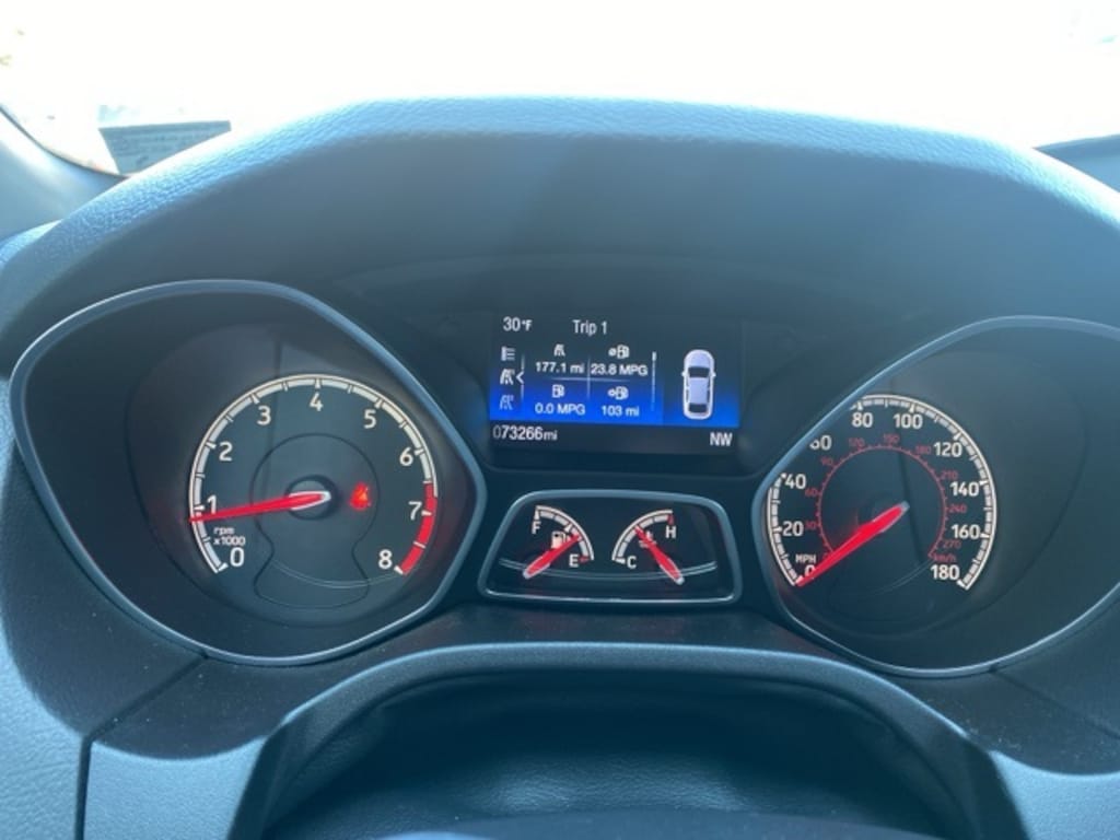 Magnetic 2018 Ford Focus ST FWD 6-Speed Manual 2.0L GTDi 4-Wheel Disc Brakes, 6 Speakers, ABS brakes, Air Conditioning, Alloy wheels, AM/FM radio, Brake assist, Bumpers: body-color, Cloth Sport Seats w/Unique ST Logo, Compass, Delay-off headlights, Driver door bin, Driver vanity mirror, Dual front impact airbags, Dual front side impact airbags, Electronic Stability Control, Emergency communication system, Equipment Group 400A, Exterior Parking Camera Rear, Four wheel independent suspension, Front anti-roll bar, Front Bucket Seats, Front Center Armrest, Front fog lights, Front reading lights, Fully automatic headlights, Illuminated entry, Knee airbag, Leather Shift Knob, Leather steering wheel, Low tire pressure warning, Occupant sensing airbag, Outside temperature display, Overhead airbag, Panic alarm, Passenger door bin, Passenger vanity mirror, Power door mirrors, Power steering, Power windows, Radio data system, Radio: AM/FM/MP3, Rear anti-roll bar, Rear window defroster, Rear window wiper, Remote keyless entry, Security system, Speed control, Speed-sensing steering, Split folding rear seat, Spoiler, Steering wheel mounted audio controls, SYNC Communications & Entertainment System, Tachometer, Telescoping steering wheel, Tilt steering wheel, Traction control, Trip computer, Turn signal indicator mirrors, Variably intermittent wipers, Wheels: 18" Premium Rado Gray-Painted Aluminum.