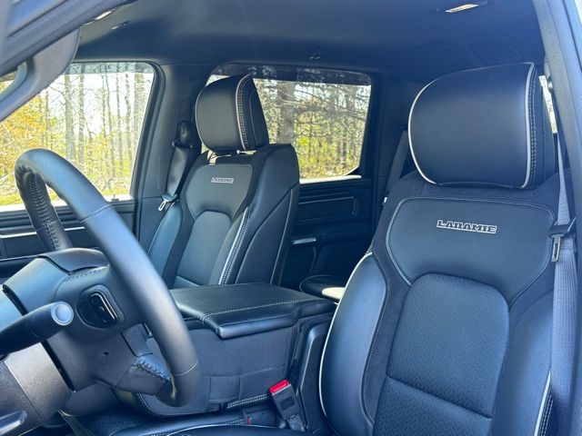 Bright White Clearcoat 2024 Ram 1500 Laramie 4WD 8-Speed Automatic HEMI 5.7L V8 Multi Displacement VVT eTorque 10 Speakers, 2nd Row In Floor Storage Bins, 3 Rear Seat Head Restraints, 4 Way Front Headrests, 4-Wheel Disc Brakes, 48V Belt Starter Generator, 4G LTE Wi-Fi Hot Spot, ABS brakes, Air Conditioning, Alloy wheels, AM/FM radio: SiriusXM with 360L, Apple CarPlay, Apple CarPlay/Android Auto, Audio memory, Auto High Beam Headlamp Control, Auto-dimming door mirrors, Auto-Dimming Exterior Driver Mirror, Auto-dimming Rear-View mirror, Automatic temperature control, Blind Spot & Cross Path Detection, Brake assist, Bumpers: chrome, Chrome Exterior Mirrors, Class IV Receiver Hitch, Compass, Connected Travel & Traffic Services, Connectivity - US/Canada, Convex Wide-Angle Exterior Mirror Insert, Delay-off headlights, Driver door bin, Driver Seat Memory, Driver vanity mirror, Dual front impact airbags, Dual front side impact airbags, Electric Shift-On-Demand Transfer Case, Electronic Stability Control, Exterior Mirrors Courtesy Lamps, Exterior Mirrors w/Heating Element, Exterior Mirrors w/Memory, Exterior Mirrors w/Supplemental Signals, Foam Bottle Insert (Door Trim Panel), For Details, Visit DriveUconnect.com, For More Info, Call 800-643-2112, Front anti-roll bar, Front Center Armrest w/Storage, Front Door Accent Lighting, Front dual zone A/C, Front fog lights, Front LED Fog Lamps, Front License Plate Bracket, Front reading lights, Front Seat Back Map Pockets, Front wheel independent suspension, Fully automatic headlights, Garage door transmitter, Global Telematics Box Module (TBM), Google Android Auto, GPS Navigation, HD Radio, Heated door mirrors, Heated Front Seats, Heated front seats, Heated Second Row Seats, Heated Steering Wheel, Heated steering wheel, Illuminated entry, Integrated Voice Command w/Bluetooth, Laramie Level 1 Equipment Group, Leather steering wheel, Leather Trim 40/20/40 Bench Seat, LED Reflector Headlamps, Low tire pressure warning, Manufacturer's Statement of Origin, Memory seat, MOPAR Front & Rear Rubber Floor Mats, Navigation System, Occupant sensing airbag, Outside temperature display, Overhead airbag, Overhead console, Panic alarm, ParkSense Front/Rear Park Assist w/Stop (DISC), ParkView Rear Back-Up Camera, Passenger door bin, Passenger vanity mirror, Power 2-Way Driver Lumbar Adjust, Power 2-Way Passenger Lumbar Adjust, Power 8-Way Driver & Passenger Seats, Power Adjustable Pedals w/Memory, Power door mirrors, Power driver seat, Power passenger seat, Power steering, Power windows, Power-Folding Mirrors, Quick Order Package 27H Laramie, Radio data system, Radio: Uconnect 5 Nav w/12.0" Display, Radio: Uconnect 5 Nav w/8.4" Display, Rain Sensitive Windshield Wipers, RAM Grille Badge - Chrome, Rear 60/40 Folding Seat, Rear anti-roll bar, Rear Door Accent Lighting, Rear Power Sliding Window, Rear seat center armrest, Rear step bumper, Rear Window Defroster, Remote keyless entry, Remote Tailgate Release, Security system, SiriusXM Radio Service, SiriusXM w/360L, Speed control, Split folding rear seat, Steering wheel mounted audio controls, Tachometer, Telescoping steering wheel, Tilt steering wheel, Traction control, Trailer Brake Control, Trip computer, Turn signal indicator mirrors, USB Host Flip, Variably intermittent wipers, Ventilated Front Seats, Ventilated front seats, Voltmeter, Wheels: 18" x 8" Aluminum Base Painted.